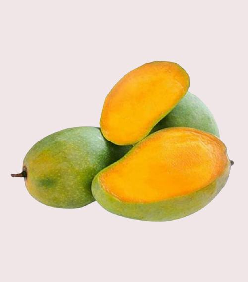 Medium to large-sized mango with greenish-yellow skin and a tangy-sweet flavour and Perfect for juices, purees